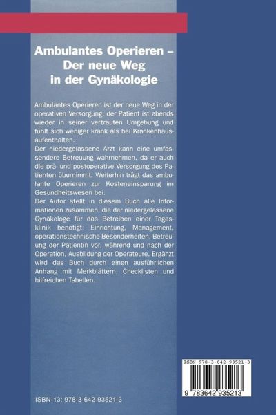 Der Autor stellt Ihnen in diesem Buch alle Informationen zusammen, die Sie für das Betreiben einer Tagesklinik benötigen: Einrichtung, Management, operationstechnische Besonderheiten, Betreuung der Patientinnen vor, während und nach der Operation, Ausbildung der Operateure. Ergänzt wird das Buch durch einen ausführlichen Anhang mit Merkblättern, Checklisten und Tabellen.
