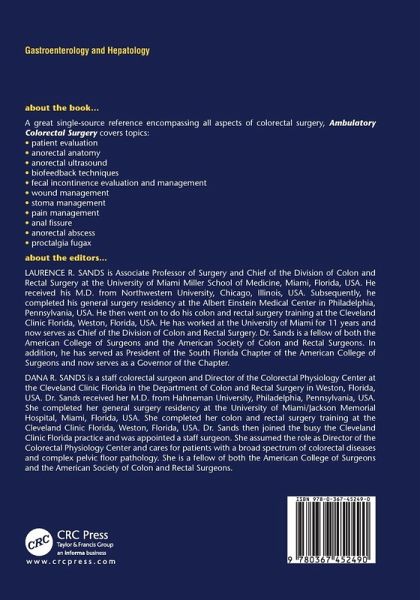 A great single-source reference encompassing all aspects of colorectal surgery, Ambulatory Colorectal Surgery covers topics: patient evaluation anorectal anatomy anorectal ultrasound biofeedback techniques fecal incontinence evaluation and management wound management stoma management pain management anal fissure anorectal abscess proctalgia fugax