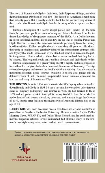 The story of Bonnie and Clyde—their love, their desperate killings, and their destruction in an explosion of gun fire—has fueled an American legend more than seventy years. But it is only with this book by the last surviving officer of the six who shot Bonnie and Clyde that the full story of their capture has been told. Ted Hinton's description of a secret, illegal police trap—hidden at the time from the press and public—is one of many revelations he draws from his intimate knowledge of the greatest manhunt of the 1930s. As a Dallas lawman he spent seventeen months, night and day, on the trail of Bonnie Parker and Clyde Barrow. He knew the notorious criminals personally from the seamy, hoodlum-ridden Dallas neighborhoods where they all grew up. He shared their code of toughness and genuinely admired the extraordinary courage, skill, and loyalty that made Bonnie and Clyde stand out almost as heroes in the public imagination. Hinton admired them, but he never doubted that they had to be stopped. The long trail could only end in a shootout and their deaths-or his. Hinton's experiences as a green young sheriff's deputy and his compassion for outlaw lovers give Ambush an unusual dimension of humanity. Twenty-seven photographs underscore the book's vivid authenticity. And the author's meticulous research, using sources available to no one else, makes this the definitive work of fact. The result is a powerful human drama of crime and the law: the real story of Bonnie and Clyde.
