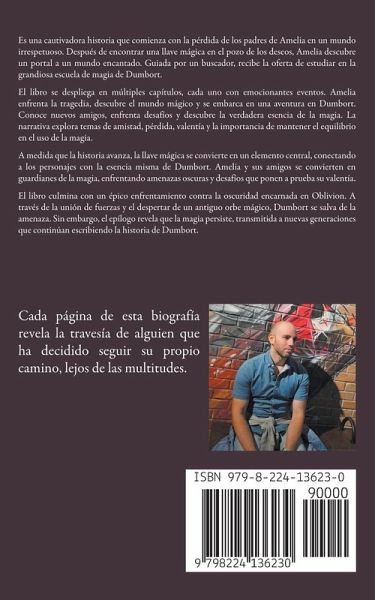Es una cautivadora historia que comienza con la pérdida de los padres de Amelia en un mundo irrespetuoso. Después de encontrar una llave mágica en el pozo de los deseos, Amelia descubre un portal a un mundo encantado. Guiada por un buscador, recibe la oferta de estudiar en la grandiosa escuela de magia de Dumbort. El libro se despliega en múltiples capítulos, cada uno con emocionantes eventos. Amelia enfrenta la tragedia, descubre el mundo mágico y se embarca en una aventura en Dumbort. Conoce nuevos amigos, enfrenta desafíos y descubre la verdadera esencia de la magia. La narrativa explora temas de amistad, pérdida, valentía y la importancia de mantener el equilibrio en el uso de la magia. A medida que la historia avanza, la llave mágica se convierte en un elemento central, conectando a los personajes con la esencia misma de Dumbort. Amelia y sus amigos se convierten en guardianes de la magia, enfrentando amenazas oscuras y desafíos que ponen a prueba su valentía. El libro culmina con un épico enfrentamiento contra la oscuridad encarnada en Oblivion. A través de la unión de fuerzas y el despertar de un antiguo orbe mágico, Dumbort se salva de la amenaza. Sin embargo, el epílogo revela que la magia persiste, transmitida a nuevas generaciones que continúan escribiendo la historia de Dumbort.