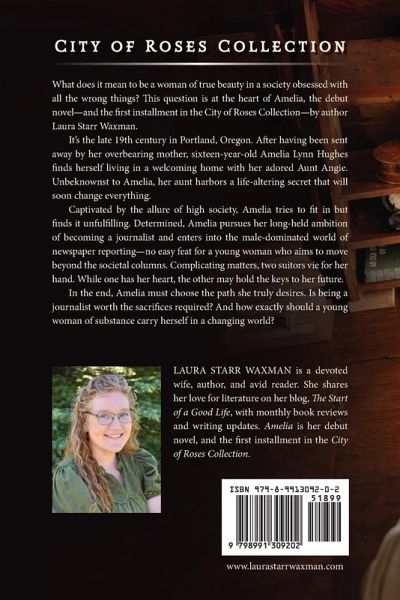 What does it mean to be a woman of true beauty in a society obsessed with all the wrong things? This question is at the heart of Amelia, the debut novel-and the first installment in the City of Roses Collection-by author Laura Starr Waxman. It's the late 19th century in Portland, Oregon. After having been sent away by her overbearing mother, sixteen-year-old Amelia Lynn Hughes finds herself living in a welcoming home with her adored Aunt Angie. Unbeknownst to Amelia, her aunt harbors a life-altering secret that will soon change everything. Captivated by the allure of high society, Amelia tries to fit in but finds it unfulfilling. Determined, Amelia pursues her long-held ambition of becoming a journalist and enters into the male-dominated world of newspaper reporting-no easy feat for a young woman who aims to move beyond the societal columns. Complicating matters, two suitors vie for her hand. While one has her heart, the other may hold the keys to her future. In the end, Amelia must choose the path she truly desires. Is being a journalist worth the sacrifices required? And how exactly should a young woman of substance carry herself in a changing world?