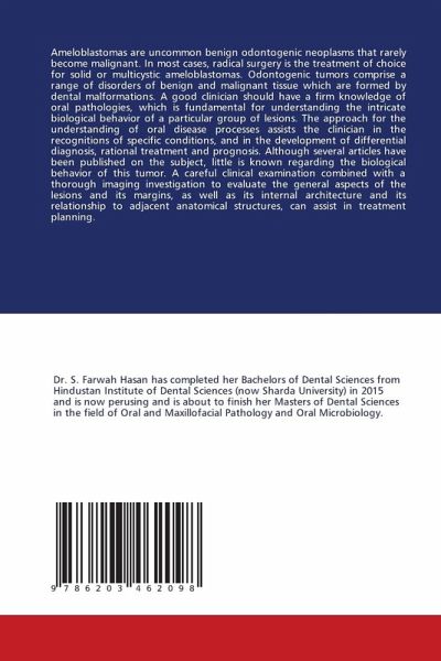 Ameloblastomas are uncommon benign odontogenic neoplasms that rarely become malignant. In most cases, radical surgery is the treatment of choice for solid or multicystic ameloblastomas. Odontogenic tumors comprise a range of disorders of benign and malignant tissue which are formed by dental malformations. A good clinician should have a firm knowledge of oral pathologies, which is fundamental for understanding the intricate biological behavior of a particular group of lesions. The approach for the understanding of oral disease processes assists the clinician in the recognitions of specific conditions, and in the development of differential diagnosis, rational treatment and prognosis. Although several articles have been published on the subject, little is known regarding the biological behavior of this tumor. A careful clinical examination combined with a thorough imaging investigation to evaluate the general aspects of the lesions and its margins, as well as its internal architecture and its relationship to adjacent anatomical structures, can assist in treatment planning.