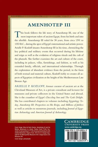 This book follows the life story of Amenhotep III, one of the most important rulers of ancient Egypt, from his birth and into the afterlife. Amenhotep III ruled for thirty-eight years, from c.1391-1353 BC, during the apex of Egypt's international and artistic power. Arielle P. Kozloff situates Amenhotep in his time, chronicling not only his life but also the key political and military events that occurred during his lifetime and reign, as well as the evolution of religious rituals and the cult of the pharaoh. She further examines the art and culture of the court, including its palaces, villas, furnishings and fashions. Through the exploration of abundant evidence from the period, in the form of both textual and material culture, Kozloff richly re-creates all aspects of Egyptian civilization at the height of the Mediterranean Bronze Age.