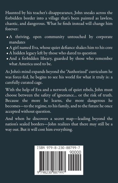 A darkly satirical dystopia about obedience, nationalism, and the dangerous dream of a "perfect" America. What happens when America fully "returns" to its Christian values? When we close our borders, silence the dissenters, and finally put America first-for real? Imagine the possibilities! A country free from foreign threats. A booming economy where businesses grow without restraint. No more "fake news," liberal media, or radical classrooms spreading doubt about capitalism. Imagine no more. Welcome to America 2184. America has been Made Great Again. Our top-tier schools use the latest tech to instill Christian obedience in every child. Our streets are clean and safe-thanks to our advanced surveillance systems. Every citizen has a job, a home, and the guidance of their local Church. It's everything True Americans were promised. Just remember: Do not question the Authorities. Always be thankful to the Owners. Obedience is love. Obedience is peace. Obedience is freedom. Now... meet John. A model student with a bright future-until a substitute teacher asks him the wrong question... and his whole world begins to unravel.
