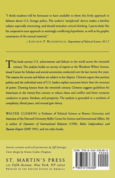This book surveys US achievements and failures in the world across the 20th century. The analysis builds upon surveys of experts at the Woodrow Wilson International Center for Scholars and several universities conducted over the last 25 years. The reasons for success and failure are subject to hot dispute. Walter Clemens argues that the individual traits of US leaders account for far more variation in outcomes than the domestic or international contexts. He concludes that the policy outcomes of the past century confirm the assumptions of mutual gain theory, complexity theory, and liberal peace theory. Clemens then uses his analysis to sketch alternative futures that could face planners in the early 21st century.