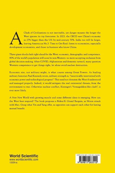 A Clash of Civilisations is not inevitable, yet danger mounts the longer the West ignores its top forecaster. In 2023, the OECD sees China's economy as 27% bigger than the US: by mid-century 70%. India too will be larger, leaving America as No.3. Time to Get Real: listen to economists, especially development economists, and those in business who know China. Three giant shocks lurk right ahead for the West: economic, demographic and competence. 90% of the world's population will soon be non-Western: no more accepting exclusion from global decision making. After COVID, Afghanistan and domestic turmoil, many question Western competence to get things right, let alone avoid nuclear destruction. Economic size, not military might, is what counts among Great Powers. As leading military historian Paul Kennedy wrote, military strength is, "inextricably intertwined with economic power and technological progress". This need not threaten the West if understood and managed properly. Indeed, it would mitigate the real existential threats, from the environment to war. Otherwise nuclear conflict, Kissinger's "Armageddon-like clash", is ever more likely. A New New World with growing muscle and some different ideas is emerging. How can the West best respond? The book proposes a Biden-Xi Grand Bargain, as Nixon struck with Mao. Grasp what Yin and Yang offer, as opposites can support each other for lasting mutual benefit.