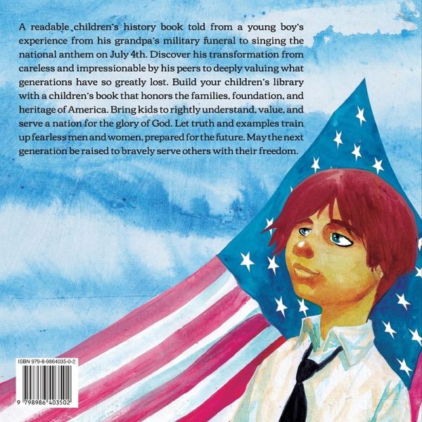 America Children's Book is a readable history book that honors the families, foundation, and heritage of America. Bring kids to rightly understand, value, and serve a nation for the glory of God. BOOK DESCRIPTION: (also book back cover) A readable children's history book told from a young boy's experience from his grandpa's military funeral and ends with the national anthem on July 4th. Discover his transformation from careless and impressionable by his peers to deeply valuing what generations have so greatly lost. Build your children's library with a children's book that honors the families, foundation, and heritage of America. Bring kids to rightly understand, value, and serve a nation for the glory of God. Let truth and examples train up fearless men and women, prepared for the future. May the next generation be raised to bravely serve others with their freedom. EBOOK: Free eBook with purchase of paperback or hardback in certain retailers. After purchase, come back to the eBook edition to download. DETAILS: 1. Pages: 44 2. Series number: 14 3. Series type: Children's Books on Life and Behavior 4. Series category: America 5. Series genre: Fiction 6. Children reading ages: Average age 8-12 years 7. Children reading grade level: Average 4th-6th grade 8. Children illustration ages: Average 2-12 years 9. Reading crowd: Children to adult 10. Reading length: Average 15-30 minutes (with dynamic expression and pauses) 11. Reading style: Illustrated narration. 12. Story tellers: Kids to Adults (parents, guardians, grandparents, teachers, pastors) 13. Historical setting: 17th-21st century 14. Purpose: Honor, respect, history, maturity, Christianity, Bible, bravery, freedom 15. Contextual Use: Family, home, school, church, neighborhoods, outreach, kid's club, plays, teaching 16. Story time suggestion: Nighttime, class time, vacation 17. Holiday/annual event: Memorial Day, Independence Day, July 4th, Veteran's Day