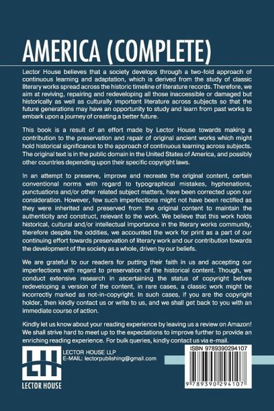 America (Complete): In Three Volumes (Complete Edition) - Edition Artistique, The World's Famous Places And Peoples This book is a result of an effort made by us towards making a contribution to the preservation and repair of original classic literature. In an attempt to preserve, improve and recreate the original content, we have worked towards: 1. Type-setting & Reformatting: The complete work has been re-designed via professional layout, formatting and type-setting tools to re-create the same edition with rich typography, graphics, high quality images, and table elements, giving our readers the feel of holding a 'fresh and newly' reprinted and/or revised edition, as opposed to other scanned & printed (Optical Character Recognition - OCR) reproductions. 2. Correction of imperfections: As the work was re-created from the scratch, therefore, it was vetted to rectify certain conventional norms with regard to typographical mistakes, hyphenations, punctuations, blurred images, missing content/pages, and/or other related subject matters, upon our consideration. Every attempt was made to rectify the imperfections related to omitted constructs in the original edition via other references. However, a few of such imperfections which could not be rectified due to intentional\unintentional omission of content in the original edition, were inherited and preserved from the original work to maintain the authenticity and construct, relevant to the work. We believe that this work holds historical, cultural and/or intellectual importance in the literary works community, therefore despite the oddities, we accounted the work for print as a part of our continuing effort towards preservation of literary work and our contribution towards the development of the society as a whole, driven by our beliefs. We are grateful to our readers for putting their faith in us and accepting our imperfections with regard to preservation of the historical content. HAPPY READING!