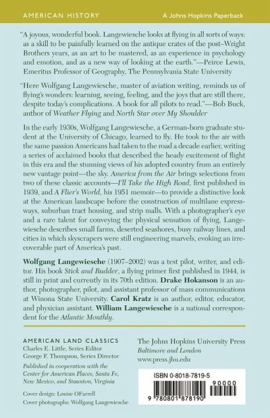 "I am no helmeted, begoggled hero of the skies; picture me bookish, bespectacled, unable to hold even a teacup without rattling it. As a pilot, I am merely an amateur, and I know it.... I shouldn't be talking. But I can't help talking. For you take the air: the thin, substanceless air that can be made to bear a man; you take America; and you take an airplane, which of all the works of man is the nearest to a living being -- you take those things and mix them up, and they will act as a drug which will knock all proper reticence right out of you. And so, here I go talking..." -- from America from the Air In 1927, Charles Lindbergh made his historic solo flight across the Atlantic; Amelia Earhart became the first woman to do so in 1932. And so was born the golden age of flying. Aviators became the era's new heroes and the airplane its icon. In early 1930s Chicago, a German-born graduate student became fascinated by the airplane and its usefulness as a great geographic and sociological tool. Wolfgang Langewiesche sold his car and used his meager salary to pay for flying lessons at 25 cents a minute. With the same passion America had taken to the road a decade earlier, Langewiesche took to the air. He eagerly inhaled the landscape and breathed observations about the country, writing a series of books that describe the heady excitement and freedom of flight and the stunning views of his adopted country from an entirely new vantage point -- the sky. This new edited volume revives the writings from two of his now out-of-print books. America from the Air draws from Langewiesche's classic account of his early experiences as a pilot, I'll Take the High Road (first published in 1939 andpraised by the New York Times as "a stirring and revealing story, told with sensitiveness and lucidity and with the warmth of a modest personal charm"), and selections from his 1951 memoir, A Flier's World, to create a distinctive book that provides a pioneering look at the Americ