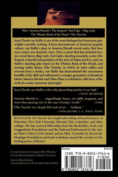 Jean-Claude van Itallie is one of the most distinguished playwrights of the American avant-garde. A keen deconstruction of American popular culture, the America Hurrah triptych served notice that here was a major new dramatic voice. America Hurrah and Other Plays is a definitive collection of the work of a major American playwright, with such works as Bag Lady, written in the voice of a deceptively insightful homeless woman; The Serpent, a fanciful interpretation of the story of Adam and Eve; The Traveller, which depicts a charismatic and brilliant artist recovering from a stroke; and van Itallie's dazzling play based on the Tibetan Book of the Dead.
