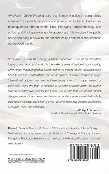 America in God's World argues that human injustice in social-policy areas such as security, economy, and ecology can be traced to defective theology/ethics abroad in the land. Renewing biblical theology and ethics, and finding new ways to appropriate this wisdom into public policy, can bring renewal to our national life and help heal and reconcile our troubled world.