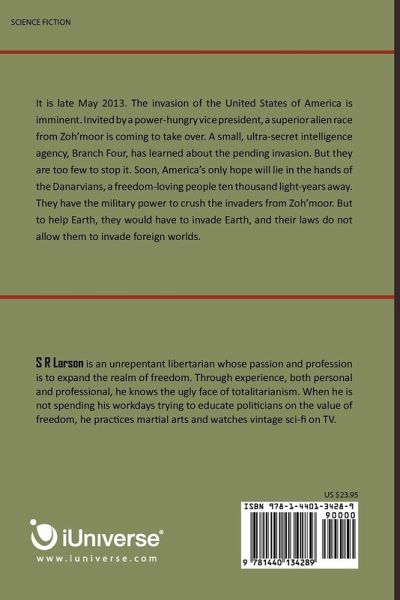 It is late May 2013. The invasion of the United States of America is imminent. Invited by a power-hungry vice president, a superior alien race from Zoh'moor is coming to take over. A small, ultra-secret intelligence agency, Branch Four, has learned about the pending invasion. But they are too few to stop it. Soon, America's only hope will lie in the hands of the Danarvians, a freedom-loving people ten thousand light-years away. They have the military power to crush the invaders from Zoh'moor. But to help Earth, they would have to invade Earth, and their laws do not allow them to invade foreign worlds.