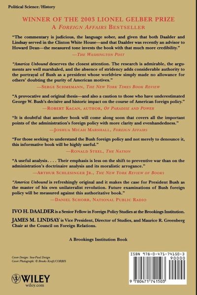 Winner of the 2003 Lionel Gelber Prize A Foreign Affairs Bestseller "The commentary is judicious, the language sober, and given that both Daalder and Lindsay served in the Clinton White House and that Daalder was recently an advisor to Howard Dean the measured tone invests the book with that much more credibility." The Washington Post "America Unbound deserves the closest attention. The research is admirable, the arguments are well marshaled, and the absence of stridency adds considerable authority to the portrayal of Bush as a president whose worldview simply made no allowance for others' doubting the purity of American motives." Serge Schmemann, The New York Times Book Review "A provocative and original thesis and also a caution to those who have underestimated George W. Bush's decisive and historic impact on the course of American foreign policy." Robert Kagan, author, Of Paradise and Power "It is doubtful that another book will come along soon that covers all the important points of the administration's foreign policy with more clarity and evenhandedness." Joshua Micah Marshall, Foreign Affairs "For those seeking to understand the Bush foreign policy and not merely to denounce it, this informative book will be highly useful." Ronald Steel, The Nation "A useful analysis. . . . Their emphasis is less on the shift to preventive war than on the administration's doctrinaire analysis and its moralistic arrogance." Arthur Schlesinger Jr., The New York Review of Books "America Unbound is refreshingly original and it makes the case for President Bush as the master of his ownunilateralist revolution. Future examinations of Bush foreign policy will be measured against this authoritative book." Daniel Schorr, National Public Radio A Brookings Institution Book