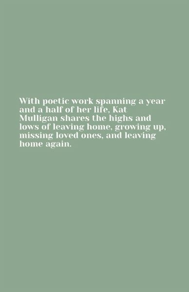 With poetic work spanning a year and a half of her life, Kat Mulligan shares the highs and lows of leaving home, growing up, missing loved ones, and leaving home again.