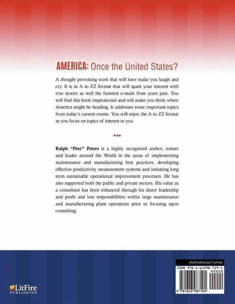 A thought provoking work that will have make you laugh and cry. It is in A to ZZ format that will spark your interest with true stories as well the funniest e-mails from years past. You will find this book inspirational and will make you think where America might be heading. It addresses some important topics from today's current events. You will enjoy the A to ZZ format as you focus on topics of interest to you.