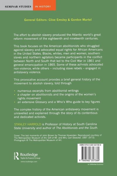This work examines the movement to abolish slavery in the US, from the origins of the movement in the 18th century through to the Civil War and the abolition of slavery in 1865. Within a basic chronological framework it also considers black abolitionists, feminism, and anti-slavery violence.