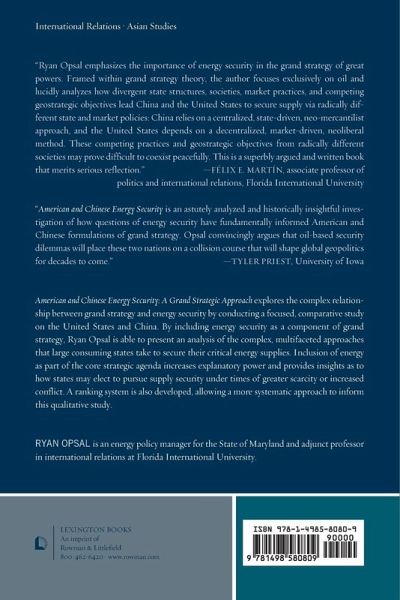 This book analyzes the complexities of energy security by studying how the United States and China approached their own supply security over a twenty-year period. Exploring these two countries and understanding how their respective grand strategies influence their approaches to energy security allows a deeper understanding of the topic.