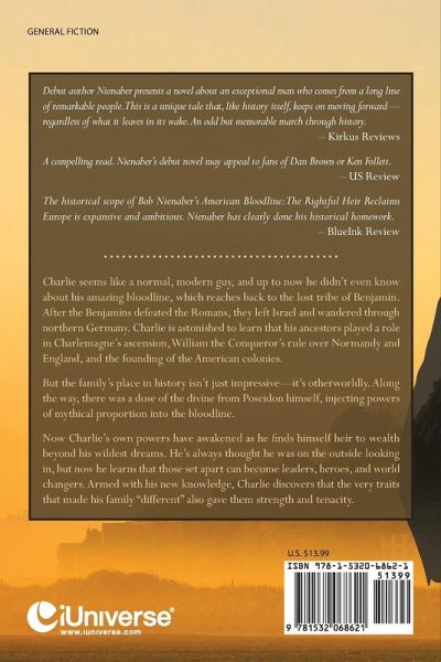 Charlie seems like a normal, modern guy, and up to now he didn't even know about his amazing bloodline, which reaches back to the lost tribe of Benjamin. After the Benjamins defeated the Romans, they left Israel and wandered through northern Germany. Charlie is astonished to learn that his ancestors played a role in Charlemagne's ascension, William the Conqueror's rule over Normandy and England, and the founding of the American colonies. But the family's place in history isn't just impressive-it's otherworldly. Along the way, there was a dose of the divine from Poseidon himself, injecting powers of mythical proportion into the bloodline. Now Charlie's own powers have awakened as he finds himself heir to wealth beyond his wildest dreams. He's always thought he was on the outside looking in, but now he learns that those set apart can become leaders, heroes, and world changers. Armed with his new knowledge, Charlie discovers that the very traits that made his family "different" also gave them strength and tenacity.