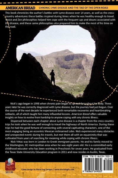 This book chronicles the author's battles with Lyme disease over 14 years, as well as the cross-country adventures these battles inspired during times when he was healthy enough to travel. Taoist and Zen philosophies helped him cope with the frequent ups and downs associated with the disease, and these same philosophies also prepared him to make the most of his time on the road. Nick's saga began in 1998 when chronic pain began to spread throughout his body. Three years later he was correctly diagnosed with Lyme disease, but the journey had just begun. Over the course of the next decade he experienced both remarkable recoveries and heartbreaking setbacks, all of which taught him many influential lessons. "American Bread" offers valuable insights on how to evolve from hardship to anyone coping with any chronic illness. Dispersed between each chapter about Lyme disease is a chapter from the cross-country trips he took when he was well enough to travel the highways of North America. During these trips he had the good fortune of connecting with several captivating characters, one of the most engaging being an eccentric Mexican nicknamed Lobo. Nick experienced many obstacles and unexpected events during his travels, but met them all with an equanimity that was cultivated from years of searching for meaning while coping with chronic illness.