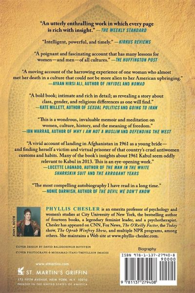 Few westerners will ever be able to understand Muslim or Afghan society unless they are part of a Muslim family. Twenty years old and in love, Phyllis Chesler, a Jewish-American girl from Brooklyn, embarked on an adventure that has lasted for more than a half-century. In 1961, when she arrived in Kabul with her Afghan bridegroom, authorities took away her American passport. Chesler was now the property of her husband's family and had no rights of citizenship. Back in Afghanistan, her husband, a wealthy, westernized foreign college student with dreams of reforming his country, reverted to traditional and tribal customs. Chesler found herself unexpectedly trapped in a posh polygamous family. She fought against her seclusion and lack of freedom, her Afghan family's attempts to convert her from Judaism to Islam, and her husband's wish to permanently tie her to the country through childbirth. Drawing upon her personal diaries, Chesler recounts her ordeal, the nature of gender apartheid-and her longing to explore this beautiful, ancient, and exotic country and culture. An American Bride in Kabul re-creates a time gone by, a place that is no more, and shares the way in which Chesler turned adversity into a passion for world-wide social, educational, and political reform.