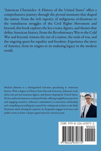 "American Chronicles: A History of the United States" offers a comprehensive journey through the pivotal moments that shaped the nation. From the rich tapestry of indigenous civilizations to the tumultuous struggles of the Civil Rights Movement and beyond, this book explores the key events, figures, and themes that define American history. From the Revolutionary War to the Cold War and beyond, witness the rise of a nation, the trials of war, and the ongoing quest for equality and freedom. Experience the story of America, from its origins to its enduring legacy in the modern world.