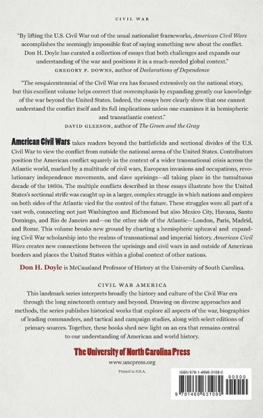 American Civil Wars takes readers beyond the battlefields and sectional divides of the U.S. Civil War to view the conflict from outside the national arena of the United States. Contributors position the American conflict squarely in the context of a wider transnational crisis across the Atlantic world, marked by a multitude of civil wars, European invasions and occupations, revolutionary independence movements, and slave uprisings-all taking place in the tumultuous decade of the 1860s. The multiple conflicts described in these essays illustrate how the United States' sectional strife was caught up in a larger, complex struggle in which nations and empires on both sides of the Atlantic vied for the control of the future. These struggles were all part of a vast web, connecting not just Washington and Richmond but also Mexico City, Havana, Santo Domingo, and Rio de Janeiro and - on the other side of the Atlantic - London, Paris, Madrid, and Rome. This volume breaks new ground by charting a hemispheric upheaval and expanding Civil War scholarship into the realms of transnational and imperial history. American Civil Wars creates new connections between the uprisings and civil wars in and outside of American borders and places the United States within a global context of other nations. Contributors: Matt D. Childs, University of South Carolina Anne Eller, Yale University Richard Huzzey, University of Liverpool Howard Jones, University of Alabama Patrick J. Kelly, University of Texas at San Antonio Rafael de Bivar Marquese, University of São Paulo Erika Pani, College of Mexico Hilda Sabato, University of Buenos Aires Stève Sainlaude, University of Paris IV Sorbonne Christopher Schmidt-Nowara, Tufts University Jay Sexton, University of Oxford