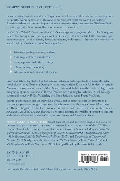 American Colonial Women and Their Art: A Chronological Encyclopedia follows the history of creative expression from the early 1600s to the late 1700s. Drawing upon primary sources his timeline encompasses a wide variety of artistic accomplishment. This volume is essential to the study of American Colonial women’s art.