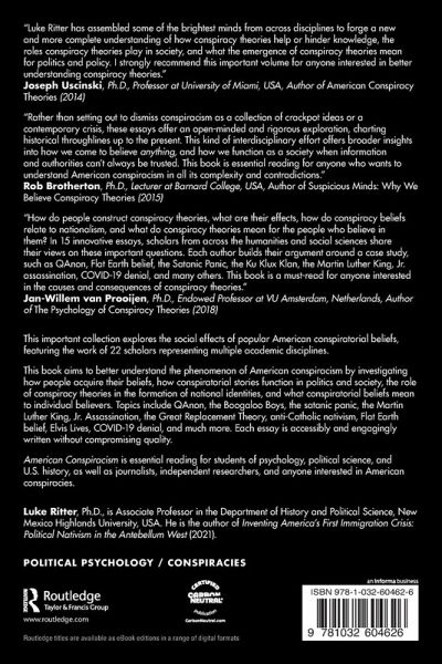 "The editor and authors behind this book have conspired to produce a scholarly work of deep importance and insight. Why do people believe conspiracy theories? This collection shows that the answers are as complex as the theories themselves. Rather than setting out to dismiss conspiracism as a collection of crackpot ideas or a contemporary crisis, these essays offer an open-minded and rigorous exploration, charting historical throughlines up to the present. Plenty of light is shed on particular ideas and political moments, from 19th-century anti-Catholicism to the death of Elvis. Yet deeper down the rabbit hole it becomes clear that this kind of interdisciplinary effort offers broader insights into how we come to believe anything, and how we function as a society when information and authorities can't always be trusted. This book is essential reading for anyone who wants to understand American conspiracism in all its complexity and contradictions."