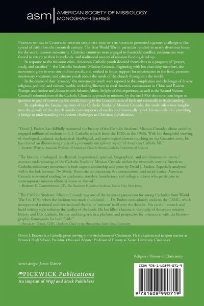Perhaps no era in Christian history since the time of the apostles presented a greater challenge to the spread of faith than the twentieth century. The First World War in particular resulted in nearly disastrous losses for the world mission movement. Christian countries were engaged in fratricidal conflict, missionaries were forced to return to their homelands, and traditional sources of mission funding dried up. In response to the missions crisis, American Catholic youth devoted themselves to a program of ""prayer, study, and sacrifice""--the Catholic Students' Mission Crusade. Beginning with less than fifty members, the movement grew to over one million youth, and worked to foster support for missionaries in the field, promote missionary vocations, and educate youth about the needs of the church throughout the world. In the course of their ""crusade,"" the movement's youth were exposed the complexities and challenges of diverse religious, political, and cultural worlds, including illiteracy in rural America, communism in China and Eastern Europe, and famine and disease in sub-Saharan Africa. In light of this experience, as well as the Second Vatican Council's reformulation of the Catholic Church's approach to missions, by the late 1960s the movement began to question its goal of converting the world, leading to the Crusade's crisis of faith and eventually to its disbanding. By exploring the fascinating story of the Catholic Students' Mission Crusade, this study offers new insights into the growth of the church amidst contemporary obstacles and historically non-Christian cultures, providing a bridge to understanding the current challenges to Christian globalization.