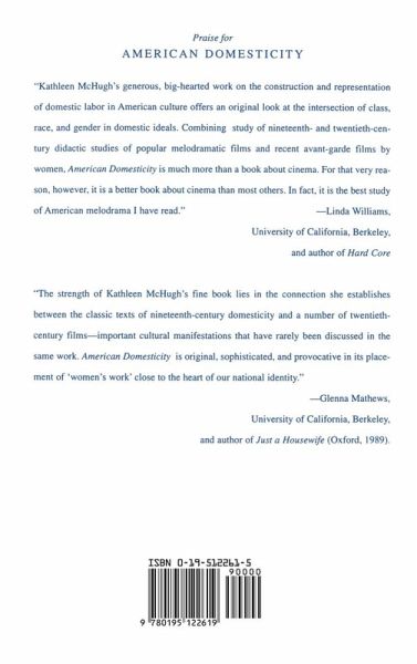 From the cult of domesticity to the Semiotics of the Kitchen, housekeeping has been central to both constructing and critiquing the role of women in American society. Frequently domesticity's style has been to make invisible the labor that produces it, allowing woman to be asserted or argued about in universal terms that downplay race, class, and material relations. American Domesticity considers this relationship in representations of domesticity and domestic labor over the last two centuries in didactic, cinematic, and feminist texts. While the domestic is usually conceived of as the antithesis of the public, economical, and political, Kathleen McHugh demonstrates how domestic discourse established the terms within which the most crucial national issues--the market economy, universal white male suffrage, slavery, the construction of racial difference, consumerism, spectatorship, desire, and even feminism--were conceived, assimilated, and understood. Beginning in the nineteenth century, the book investigates the historical roots of domestic labors invisibility in widely circulated didactic housekeeping manuals written by Lydia Child, Catherine Beecher, Mary Pattison, and Christine Frederick. It then considers how pedagogical discourses became entertainment discourses, their focus shifting from the silent era of film to the twilight of the classical period. The book concludes with an examination of the return of a pedagogical impulse within feminist film production concerning domesticity, comparing it to the concurrent rise of feminist film theory in the academy. Looking at this wide range of print and film texts, McHugh traces the outlines of a discourse of domesticity that claims to be private and universal but instead brokers difference within the public sphere.