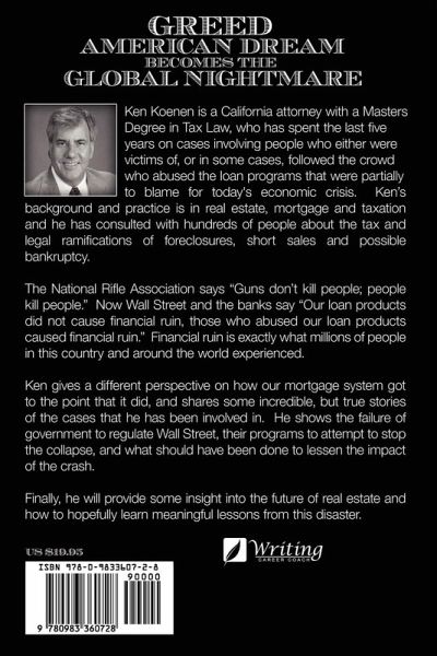 Ken Koenen is a California attorney with a Masters Degree in Tax Law, who has spent the last five years on cases involving people who either were victims of, or in some cases, followed the crowd who abused the loan programs that were partially to blame of today's economic crisis. Ken's background and practice is in real estate, mortgage and taxation and he has consulted with hundreds of people about the tax and legal ramifications of foreclosures, short sales and possible bankruptcy.He will provide some insight into the future of real estate and how to hopefully learn meaningful lessons from this disaster.