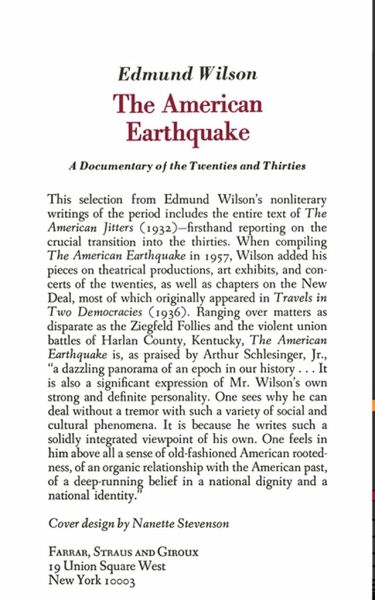 The American Earthquake amply conveys the astonishing breadth of Edmund Wilson's talent, provides an unparalleled vision of one of the most troubling periods in American history, and, perhaps inadvertently, offers a self-portrait comparable to The Education of Henry Adams. During a twelve-month period in 1930 and 1931, Edmund Wilson wrote a series of lengthy articles which he then collected in a book called American Jitters: A Year of the Slump. The resulting chronicle was hailed by the New York Times as "the best reporting that the period of depression has brought forth in the United States," and forms the heart of the present volume. In prose that is by turns dramatic and naturalistic, inflammatory and evocative, satirical and droll, Wilson painted an unforgettable portrait of a time when "the whole structure of American society seemed actually to be going to pieces." The American Earthquake bookends this chronicle with a collection of Wilson's non-literary articles-including criticism, reportage, and some fiction-from the years of "The Follies," 1923-1928, and the dawn of the New Deal, 1932-1934. During this period, Wilson had grown from a little-known journalist to one of the most important American literary and social critics of the century.