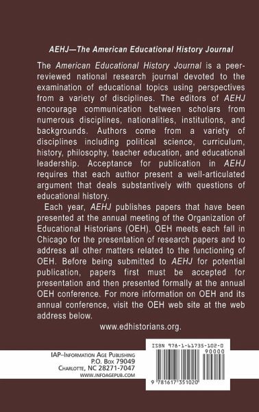 The American Educational History Journal is a peer-reviewed national research journal devoted to the examination of educational topics using perspectives from a variety of disciplines. The editors of AEHJ encourage communication between scholars from numerous disciplines, nationalities, institutions, and backgrounds. Authors come from a variety of disciplines including political science, curriculum, history, philosophy, teacher education, and educational leadership. Acceptance for publication in AEHJ requires that each author present a well-articulated argument that deals substantively with questions of educational history.