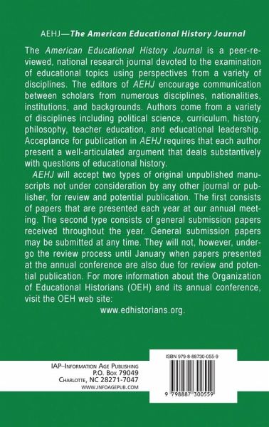 The American Educational History Journal is a peer-reviewed, national research journal devoted to the examination of educational topics using perspectives from a variety of disciplines. The editors of AEHJ encourage communication between scholars from numerous disciplines, nationalities, institutions, and backgrounds. Authors come from a variety of disciplines including political science, curriculum, history, philosophy, teacher education, and educational leadership. Acceptance for publication in AEHJ requires that each author present a well-articulated argument that deals substantively with questions of educational history. AEHJ will accept two types of original unpublished manuscripts not under consideration by any other journal or publisher, for review and potential publication. The first consists of papers that are presented each year at our annual meeting. The second type consists of general submission papers received throughout the year. General submission papers may be submitted at any time. They will not, however, undergo the review process until January when papers presented at the annual conference are also due for review and potential publication. For more information about the Organization of Educational Historians (OEH) and its annual conference, visit the OEH web site: www.edhistorians.org.