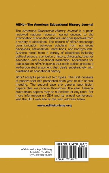 The American Educational History Journal is a peer-reviewed national research journal devoted to the examination of educational topics using perspectives from a variety of disciplines. The editors of AEHJ encourage communication between scholars from numerous disciplines, nationalities, institutions, and backgrounds. Authors come from a variety of disciplines including political science, curriculum, history, philosophy, teacher education, and educational leadership. Acceptance for publication in AEHJ requires that each author present a well-articulated argument that deals substantively with questions of educational history.
