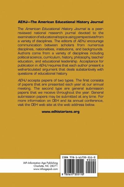 The American Educational History Journal is a peer-reviewed national research journal devoted to the examination of educational topics using perspectives from a variety of disciplines. The editors of AEHJ encourage communication between scholars from numerous disciplines, nationalities, institutions, and backgrounds. Authors come from a variety of disciplines including political science, curriculum, history, philosophy, teacher education, and educational leadership. Acceptance for publication in AEHJ requires that each author present a well-articulated argument that deals substantively with questions of educational history.…mehr