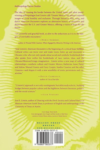 The idea of crossing the border between the United States and what award-winning anthropologist José Limón calls "Greater Mexico" has always conjured images of racial hostility and exclusion. Through literature, film, song, and dance, American Encounters explores an alternative history of attraction and desire between the U.S. and Greater Mexico, offering a vision of hope for the future.