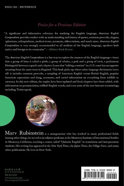 The American English Compendium is a fun way to explore the nuances of the English language-learn that a group of lions is called a pride; a group of whales, a pod; and a group of owls, a parliament. This edition offers fresh chapters which include spelling, punctuation, and pronunciation; and even Twitterspeak and other online vernacular.
