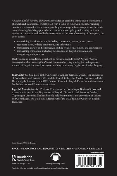 Ideally suited as a standalone workbook or for use alongside British English Phonetic Transcription, American English Phonetic Transcription is keyreading for undergraduate students of linguistics as well as anyone teaching or learning English as a foreign language.