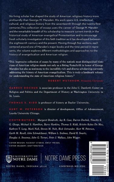 No living scholar has shaped the study of American religious history more profoundly than George M. Marsden. His work spans U.S. intellectual, cultural, and religious history from the seventeenth through the twenty-first centuries. This collection of essays uses the career of George M. Marsden and the remarkable breadth of his scholarship to measure current trends in the historical study of American evangelical Protestantism and to encourage fresh scholarly investigation of this faith tradition as it has developed between the eighteenth century and the present. Moving through five sections, each centered around one of Marsden's major books and the time period it represents, the volume explores different methodologies and approaches to the history of evangelicalism and American religion. Besides assessing Marsden's illustrious works on their own terms, this collection's contributors isolate several key themes as deserving of fresh, rigorous, and extensive examination. Through their close investigation of these particular themes, they expand the range of characters and communities, issues and ideas, and contingencies that can and should be accounted for in our historical texts. Marsden's timeless scholarship thus serves as a launchpad for new directions in our rendering of the American religious past.