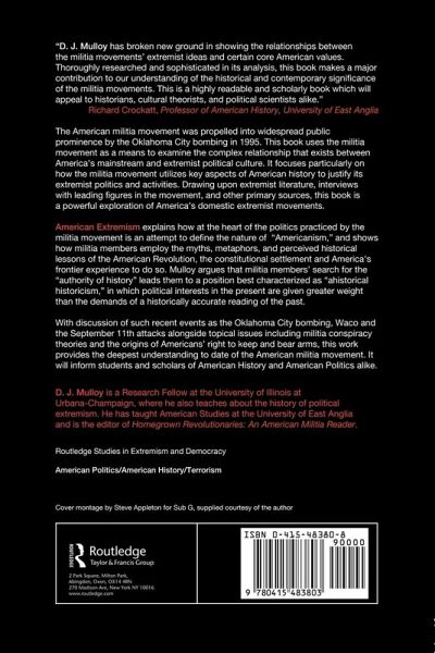 American Extremism explains how at the heart of the politics practiced by the militia movement is an attempt to define the nature of 'Americanism', and shows how militia members employ the myths, metaphors and perceived historical lessons of the American Revolution, the constitutional settlement and America's frontier experience to do so. Mulloy argues that militia members' search for the 'authority of history' leads them to a position best characterized as 'ahistorical historicism', in which political interests in the present are given greater weight than the demands of a historically accurate reading of the past. With discussion of such recent events as the Oklahoma City bombing, Waco and the September 11th attacks alongside topical issues including militia conspiracy theories and the origins of Americans' right to keep and bear arms, this work provides the deepest understanding to date of the American militia movement.
