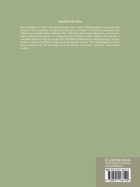 First published in 1997, American Fiction, 1901-1925: A Bibliography is an invaluable record of first printings of American fiction for scholars of American literature and collectors of modern first editions. Over 350 print and online reference sources have been reviewed to provide a comprehensive listing of titles which will provide a valuable reference tool for students in the fields of American cultural history, literary studies, historical, political, religious, and popular studies. The bibliography will also assist research in the growing areas of African-American, women's, and ethnic studies.