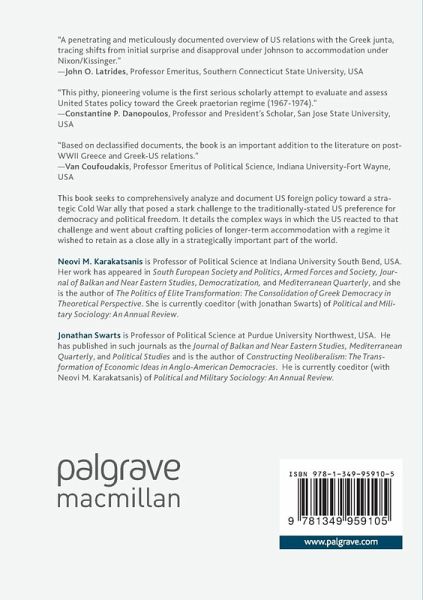 1. Political Instability and Breakdown: The Historical Context.- 2. A Fait Accompli: The US Reaction to the Greek Military Coup of 1967.- 3. Johnson, Nixon and Athens: Changing Foreign Policy towards the Greek Military Dictatorship.- 4. Internal Divides: The White House, State Department and the Athens Embassy.- 5. A View of the Colonels from the US Congress: Supporters and Opponents of the Greek Regime.- 6. US Diplomacy within Europe and NATO on the Greek Question.- 7. Agency in Athens: The Greek Colonels' Strategy towards the US.- 8. Assessing US Foreign Policy in the Junta Era