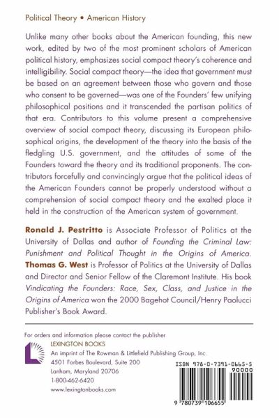 The American Founding and the Social Compact is a first-rate collection of essays that examine the shared political ideas of the American Founders with a particular focus on the theory of the social compact. As this volume so convincingly argues, an understanding of social compact theory is essential for understanding the Founders' ideas about human nature, government and politics.