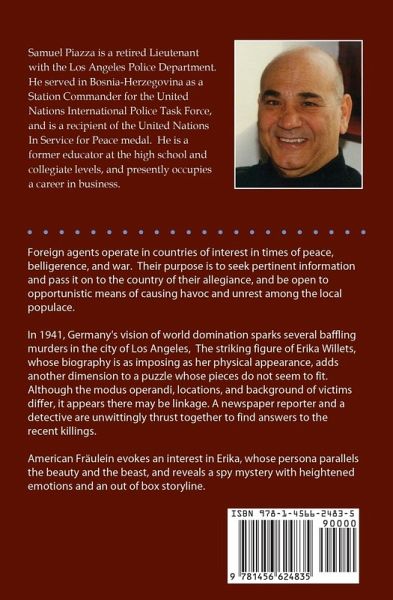 Foreign agents operate in countries of interest in times of peace, belligerence, and war. Their purpose is to seek pertinent information and pass it on to the country of their allegiance, and be open to opportunistic means of causing havoc and unrest among the local populace. In 1941, Germany's vision of world domination sparks several baffling murders in the city of Los Angeles, The striking figure of Erika Willets, whose biography is as imposing as her physical appearance, adds another dimension to a puzzle whose pieces do not seem to fit. Although the modus operandi, locations, and background of victims differ, it appears there may be linkage. A newspaper reporter and a detective are unwittingly thrust together to find answers to the recent killings. American Fräulein evokes an interest in Erika, whose persona parallels the beauty and the beast, and reveals a spy mystery with heightened emotions and an out of box storyline.