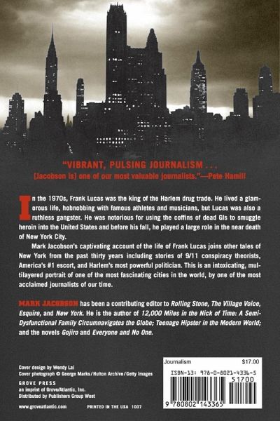 In the 1970s, Frank Lucas was the king of the Harlem drug trade, bringing in over a million dollars a day. So many heroin addicts were buying from him on 116th Street that he claimed the Transit Authority changed the bus routes to avoid them. He lived a glamorous life, hobnobbing with athletes, musicians, and politicians, but Lucas was a ruthless gangster. He was notorious for using the coffins of dead GIs to smuggle heroin into the United States and, before being sentenced to seventy years in prison, he played a major role in the near death of New York City. In American Gangster , Mark Jacobson's captivating account of the life of Frank Lucas (the basis for the forthcoming major motion picture) joins other tales of New York City from the past thirty years. The collection features a number of Jacobson's most famous essays, as well as previous unpublished work and recent articles on 9/11 conspiracy theorists, America's #1 escort, and Harlem's own Charles Rangel, the new chairman of the House Ways and Means Committee. American Gangster is a vibrant, many-layered portrait of the most fascinating city in the world, by one of the most acclaimed journalists of our time.