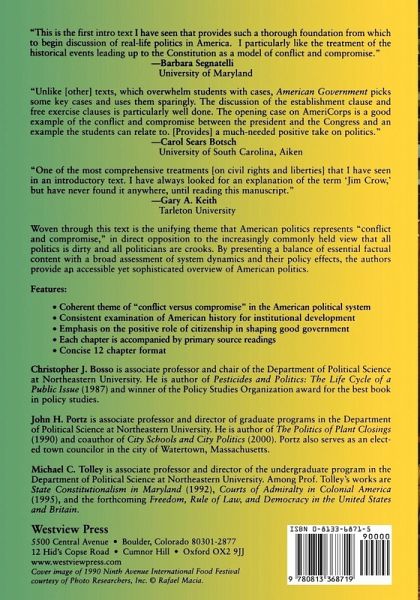 "Woven through this text is the unifying theme that American politics represents "conflict and compromise," in direct opposition to the increasingly commonly held view that all politics is dirty and all politicians are crooks. By presenting a balance of essential factual content with a broad assessment of system dynamics and their policy effects, the authors provide an accessible yet sophisticated overview of American politics. Features: Coherent theme of "conflict versus compromise" in the American political system Consistent examination of American history for institutional development Emphasis on the positive role of citizenship in shaping good government Each chapter is accompanied by primary source readings Concise 12 chapter format"