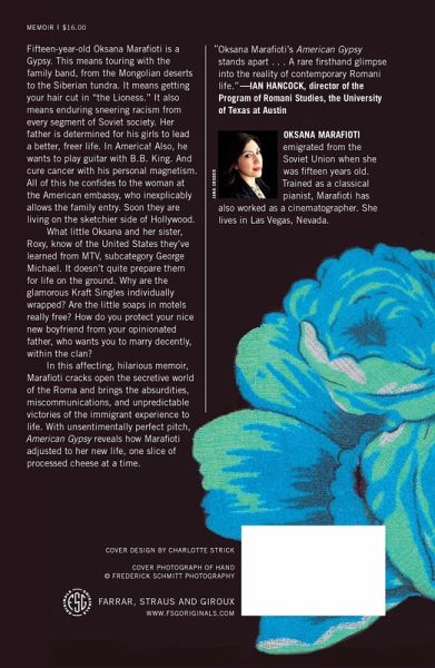 A vivid and funny memoir about growing up Gypsy and becoming American Fifteen-year-old Oksana Marafioti is a Gypsy. This means touring with the family band from the Mongolian deserts to the Siberian tundra. It means getting your hair cut in "the Lioness." It also means enduring sneering racism from every segment of Soviet society. Her father is determined that his girls lead a better, freer life. In America! Also, he wants to play guitar with B. B. King. And cure cancer with his personal magnetism. All of this he confides to the woman at the American embassy, who inexplicably allows the family entry. Soon they are living on the sketchier side of Hollywood. What little Oksana and her sister, Roxy, know of the United States they've learned from MTV, subcategory George Michael. It doesn't quite prepare them for the challenges of immigration. Why are the glamorous Kraft Singles individually wrapped? Are the little soaps in the motels really free? How do you protect your nice new boyfriend from your opinionated father, who wants you to marry decently, within the clan? In this affecting, hilarious memoir, Marafioti cracks open the secretive world of the Roma and brings the absurdities, miscommunications, and unpredictable victories of the immigrant experience to life. With unsentimentally perfect pitch, American Gypsy reveals how Marafioti adjusted to her new life in America, one slice of processed cheese at a time.