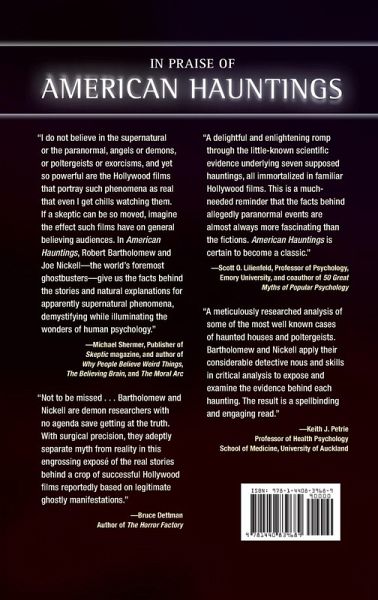 This work provides an accurate, in-depth examination and scientific evaluation of the most famous hauntings in American history as depicted in popular films and television programs. Neither a debunking book nor one written for the "true believer" in the paranormal, American Hauntings objectively scrutinizes the historic evidence behind such hugely popular films as The Exorcist, The Amityville Horror, An American Haunting, The Conjuring, and The Haunting in Connecticut to ascertain the accuracy of these entertainment depictions of "true life" hauntings. The authors then compare these popular culture accounts against the alleged real-life encounters and impartially weigh the evidence to assess whether each incident actually took place. Written by highly credentialed, recognized authorities on the paranormal and social psychology, this book contains meticulously documented, science-based information written for a broad audience, from middle and high school students and those taking introductory courses at a university level to general readers. There is no other work that provides as careful and unbiased an evaluation of the most famous hauntings in American history. The book also examines the reliability of popular television shows such as Unsolved Mysteries and Paranormal Witness.