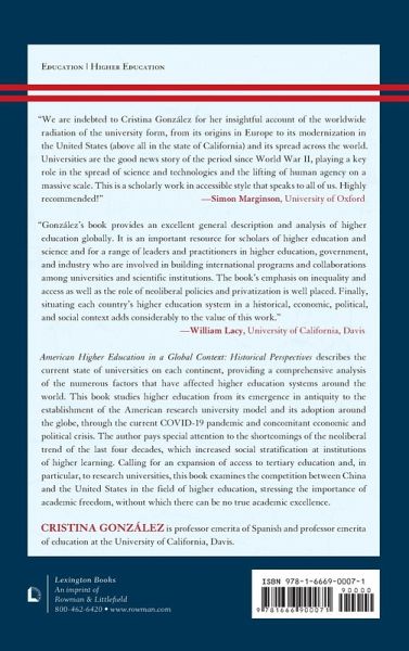 Prologue Introduction: The 21st Century: Global Issues in Higher Education Chapter 1: Higher Education and Economic Development: From the Appearance of the First Formal Schools to the Creation of the University Chapter 2: The University Travels to the New World: Higher Education in the Spanish and English Colonies Chapter 3: From Independence to Hegemony: The Rise of the American Research University Chapter 4: Higher Education in the 20th Century: The Golden Age of the American Research University Chapter 5: Higher Education in Europe: Divergent Paths Chapter 6: Higher Education in Latin America and Canada: Between Europe and the United States Chapter 7: Higher Education in Africa and the Middle East: Colonial Legacies Chapter 8: Higher Education in Asia, Australia and New Zealand: Emergent Powers Conclusion: The 21st Century: American Higher Education in a Global Context